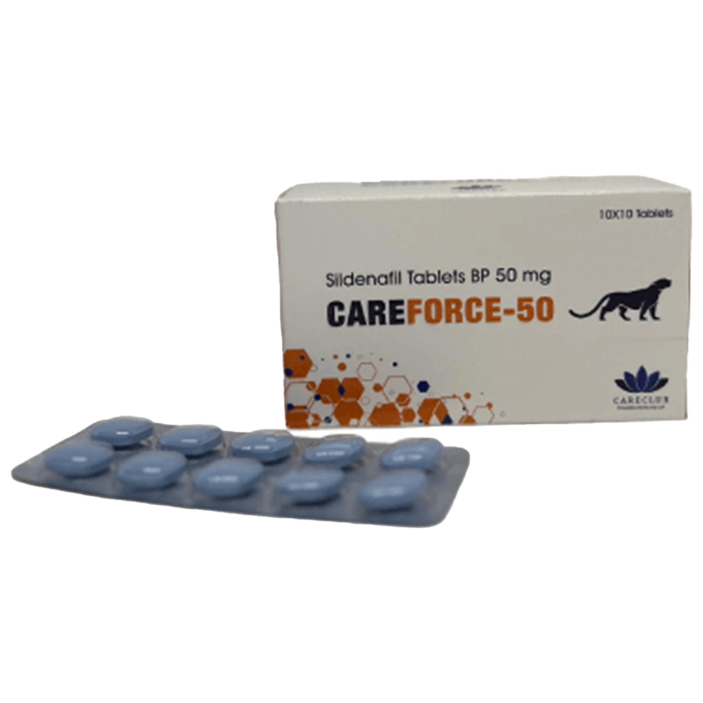 CareForce 50mg is de instapvariant binnen de CareForce-lijn en bevat 50mg sildenafil per tablet. Daardoor is het de meest voorzichtige keuze voor mannen die sildenafil voor het eerst willen proberen. Bovendien is het geschikt voor wie bij hogere doseringen eerder last had van bijwerkingen zoals hoofdpijn of een warm gevoel.